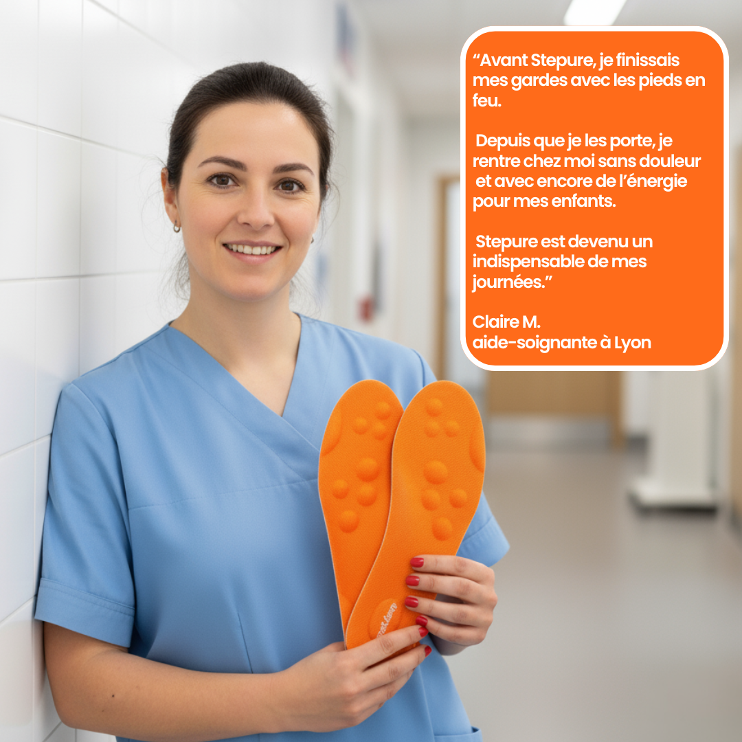 Que vous passiez vos journées debout à soigner, marcher ou aider les autres, les semelles Stepure vous offrent un confort immédiat et durable.